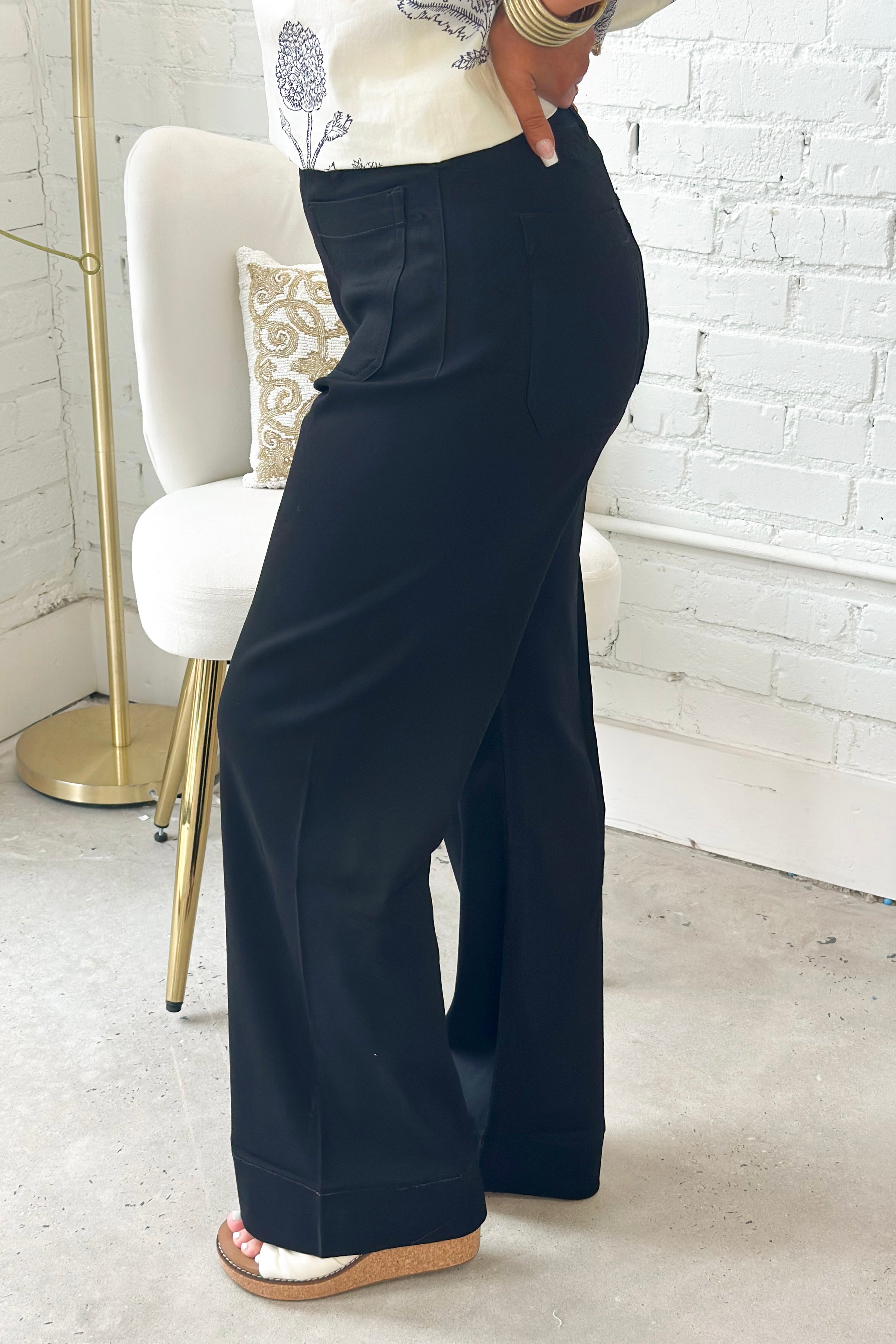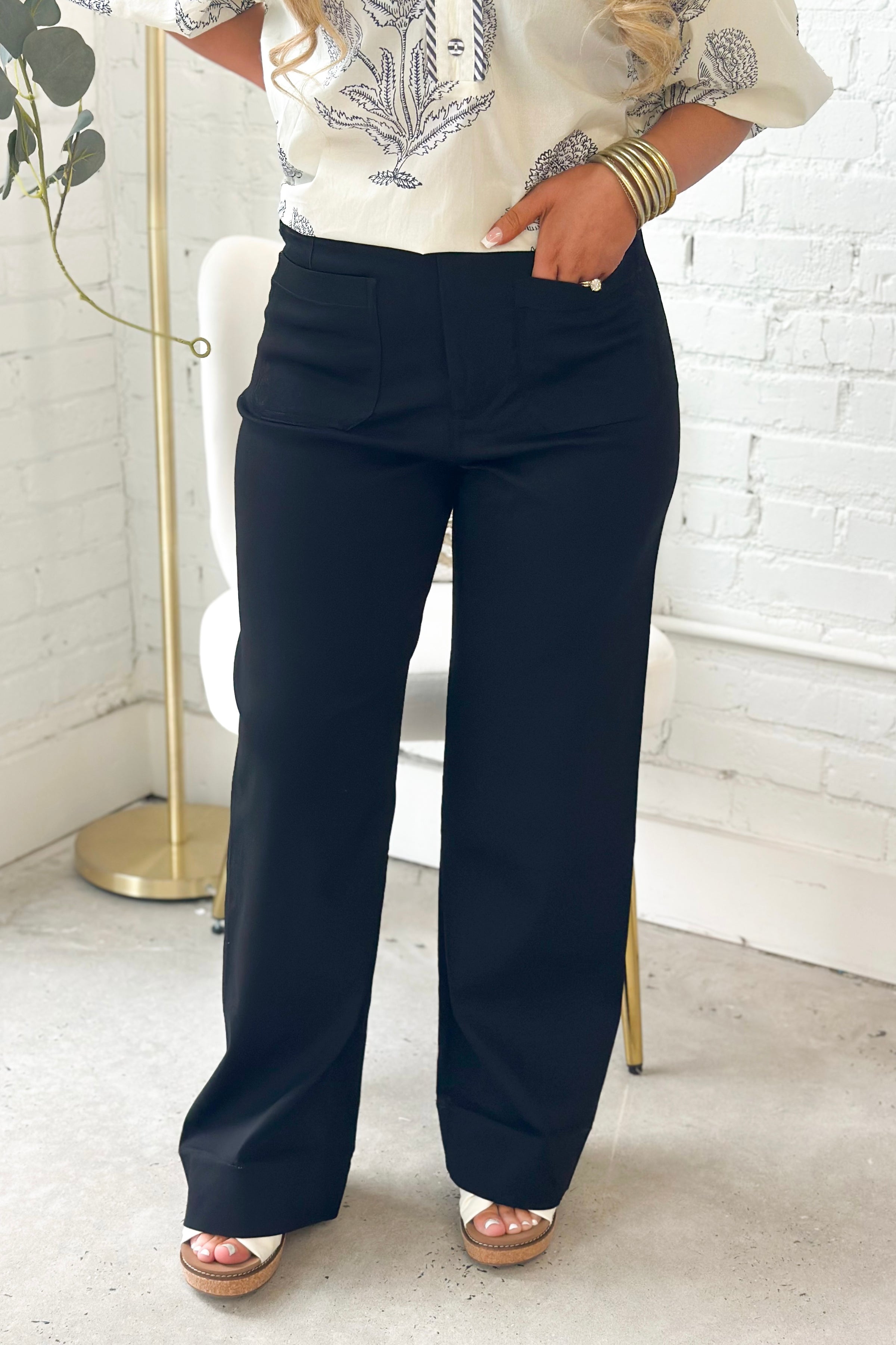 Black Front Pocket Button Detail Pants