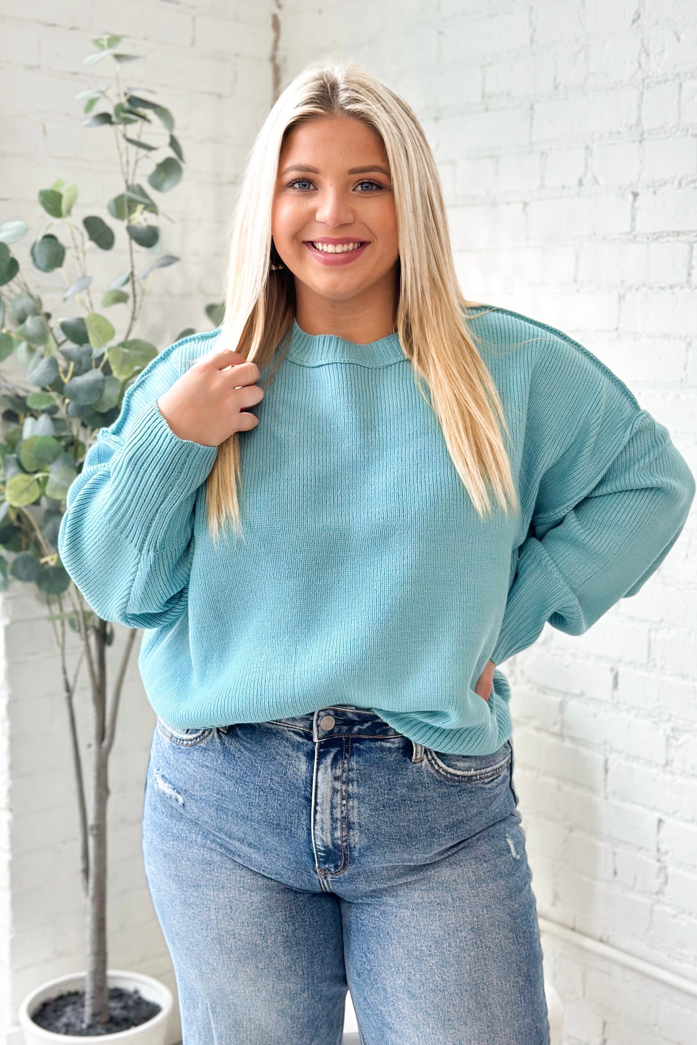 Sky Blue Crew Neck Long Sleeve Sweater