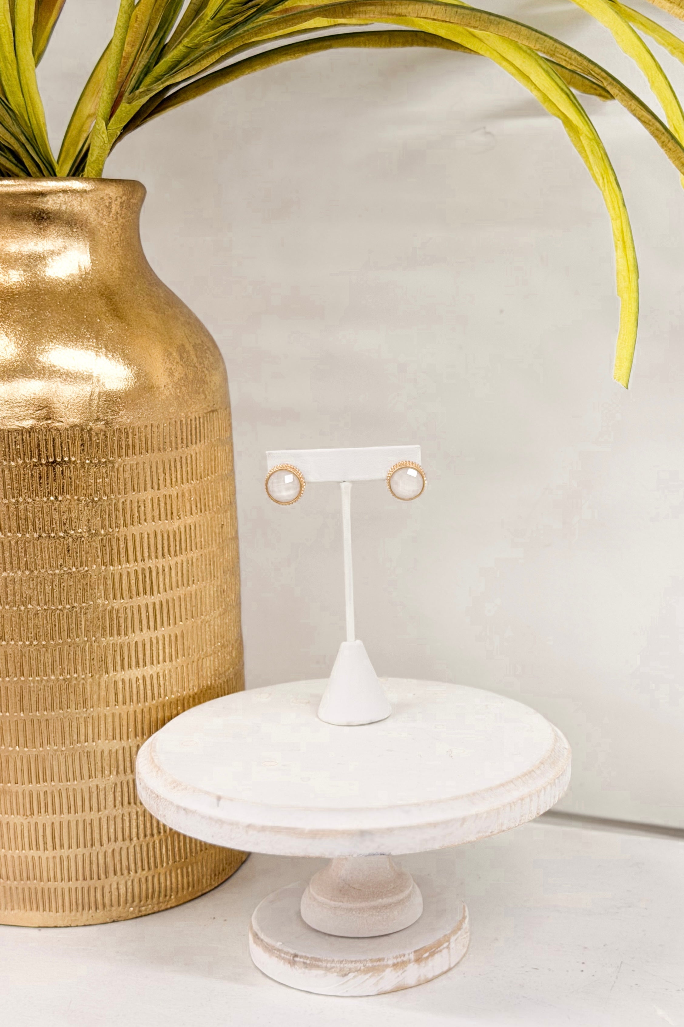 White & Gold Round Stone Earrings