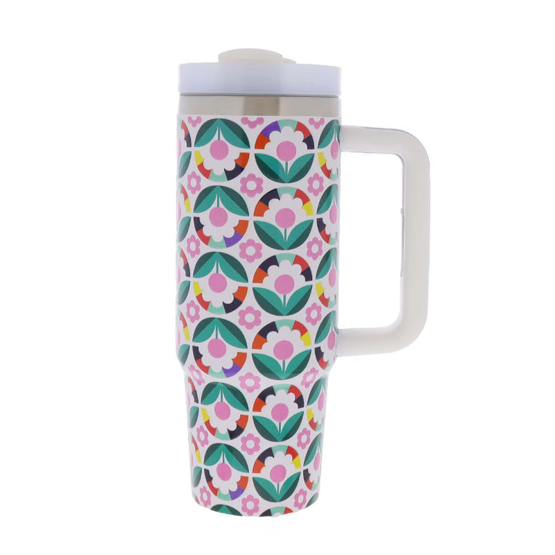 Bloom 30 Oz. Tumbler With Straw and Handle, Stainless Steel
