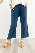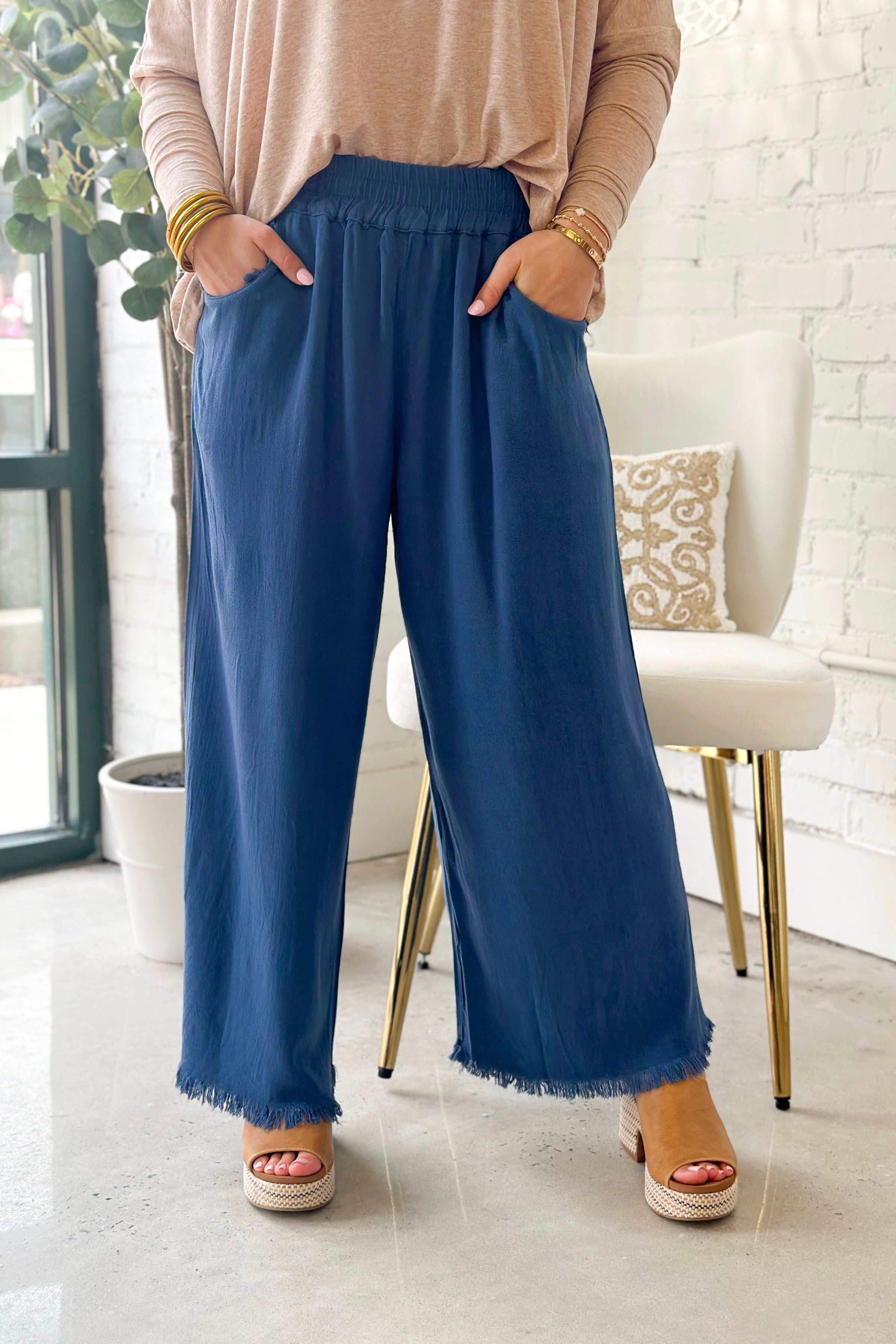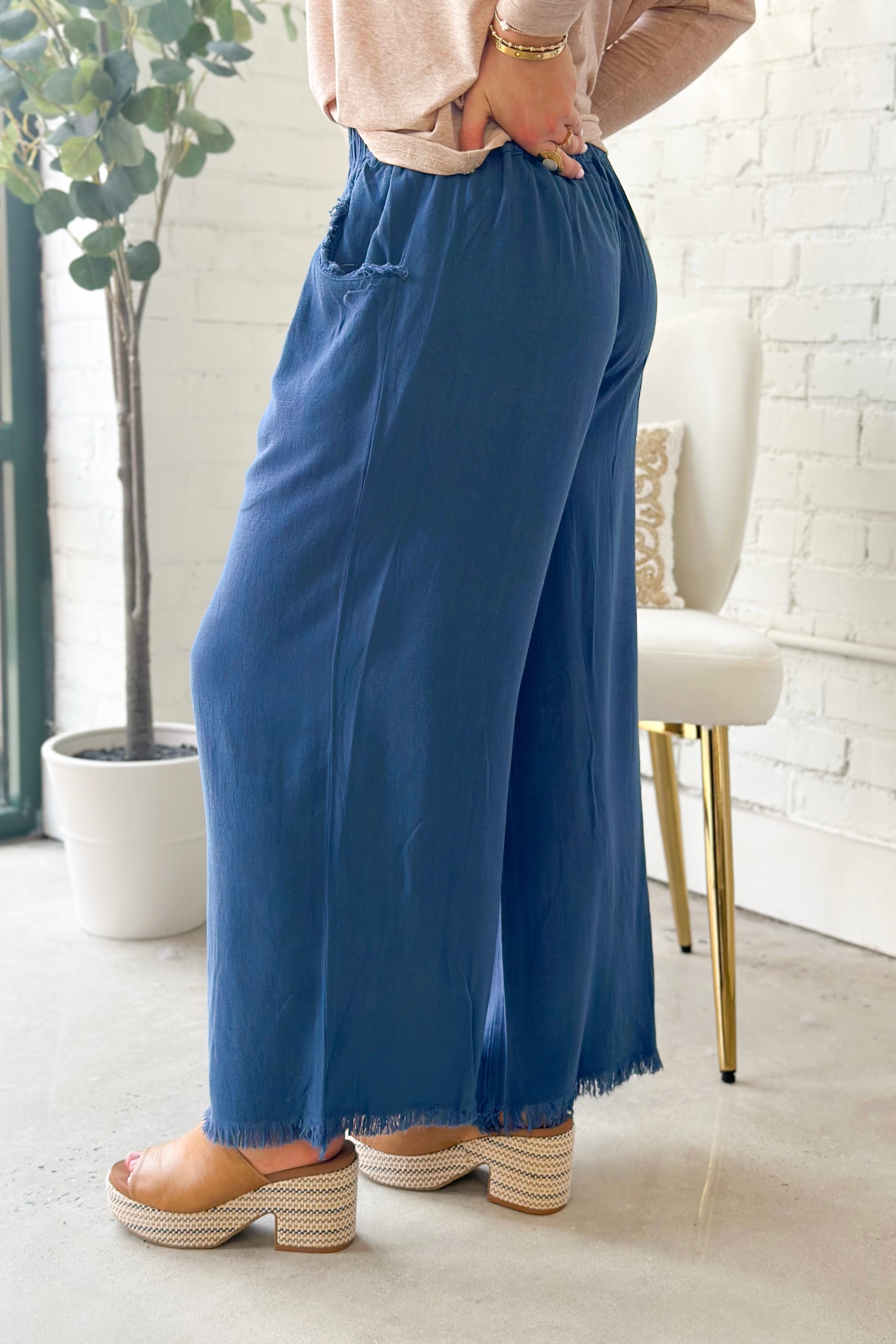Slate Blue Wide Leg Elastic Frayed Pants *Final Sale*