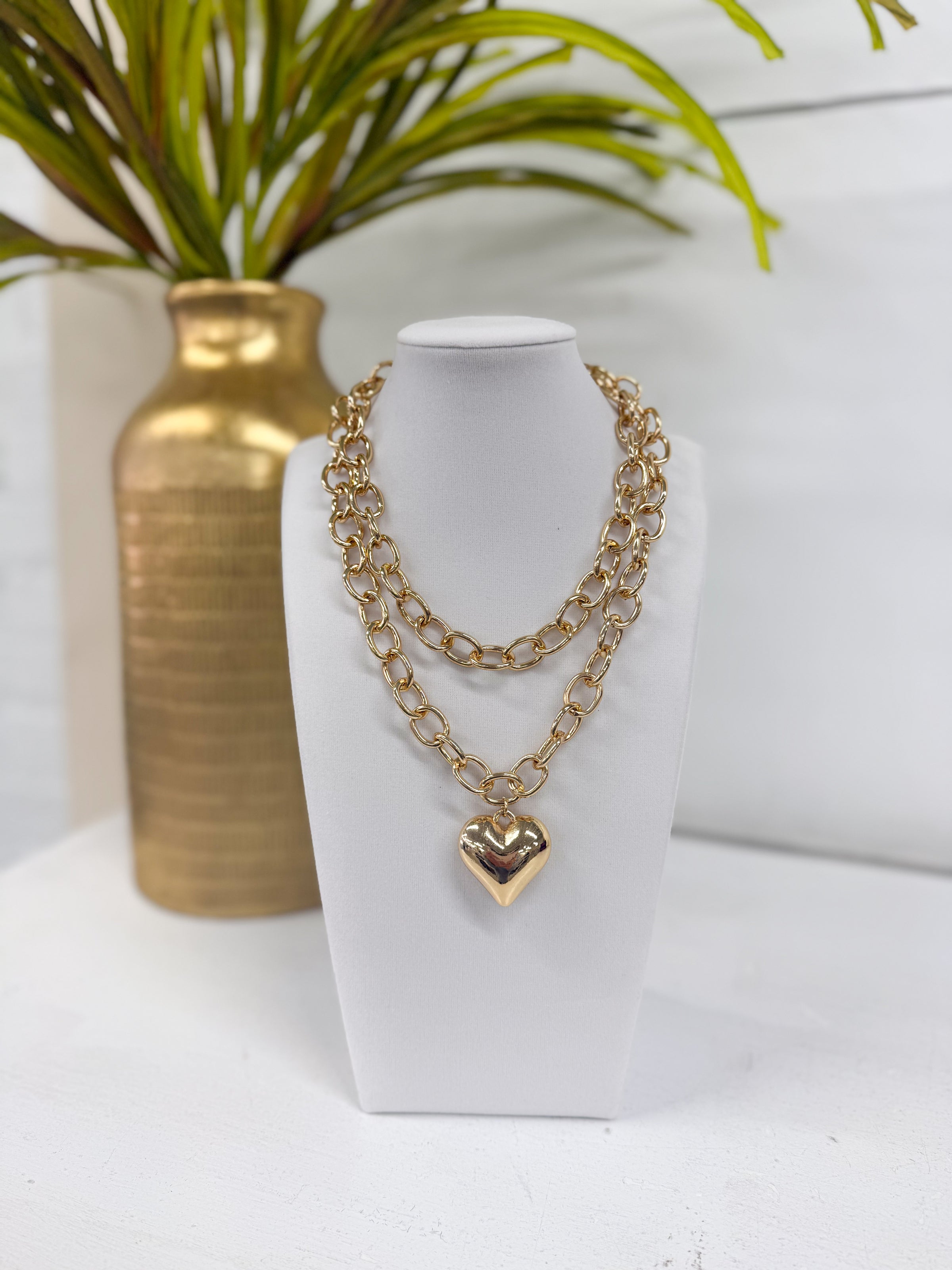 Gold Heart & Chunky Chain Necklace Set