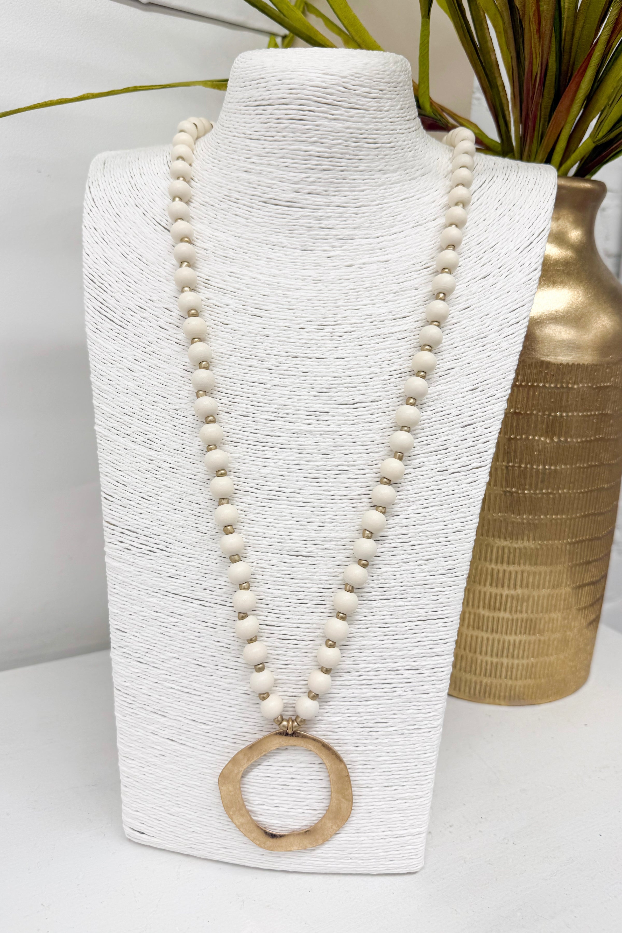 Ivory Circle Pendant Bead Necklace