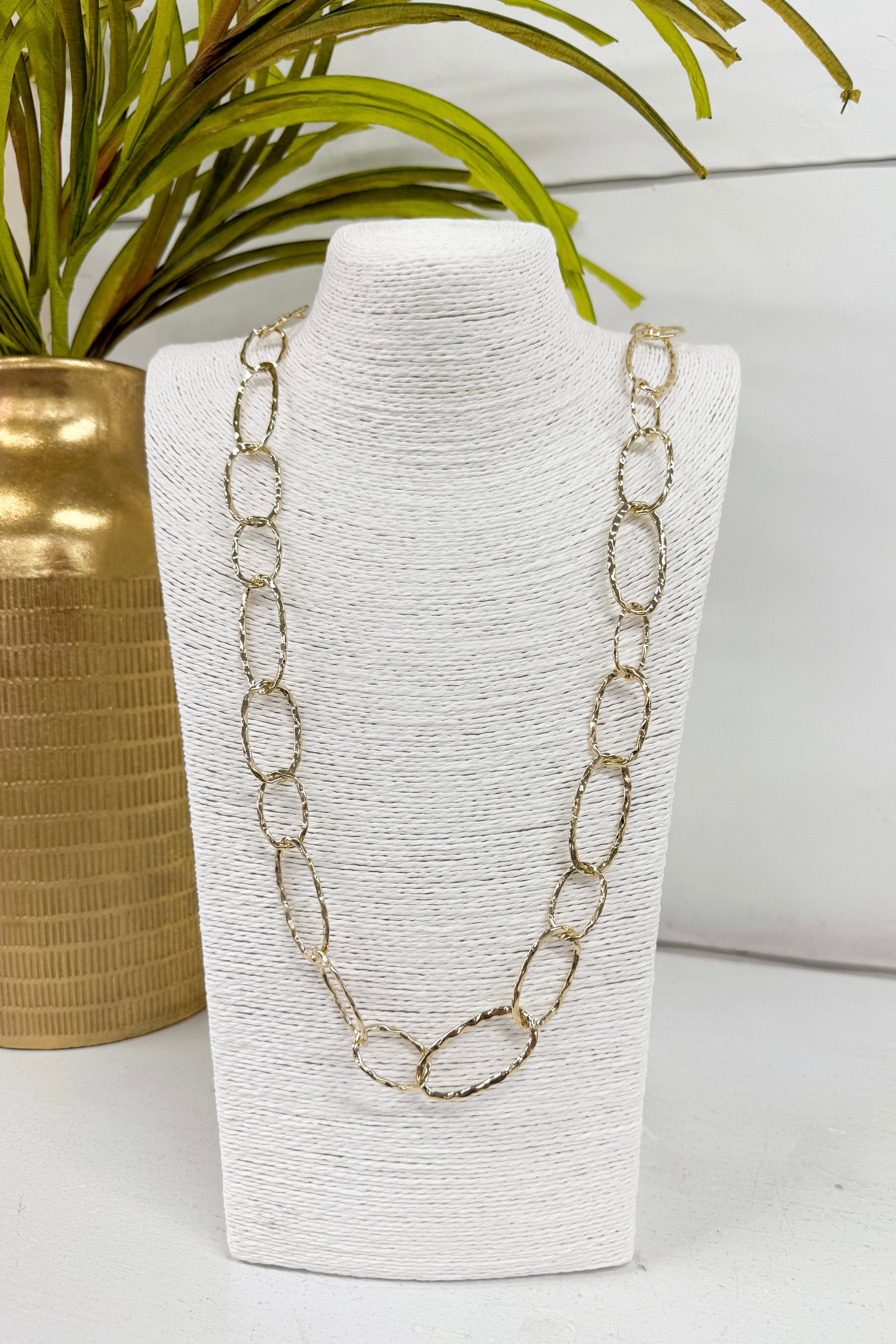 Matte Gold Textured Oval Link Long Necklace