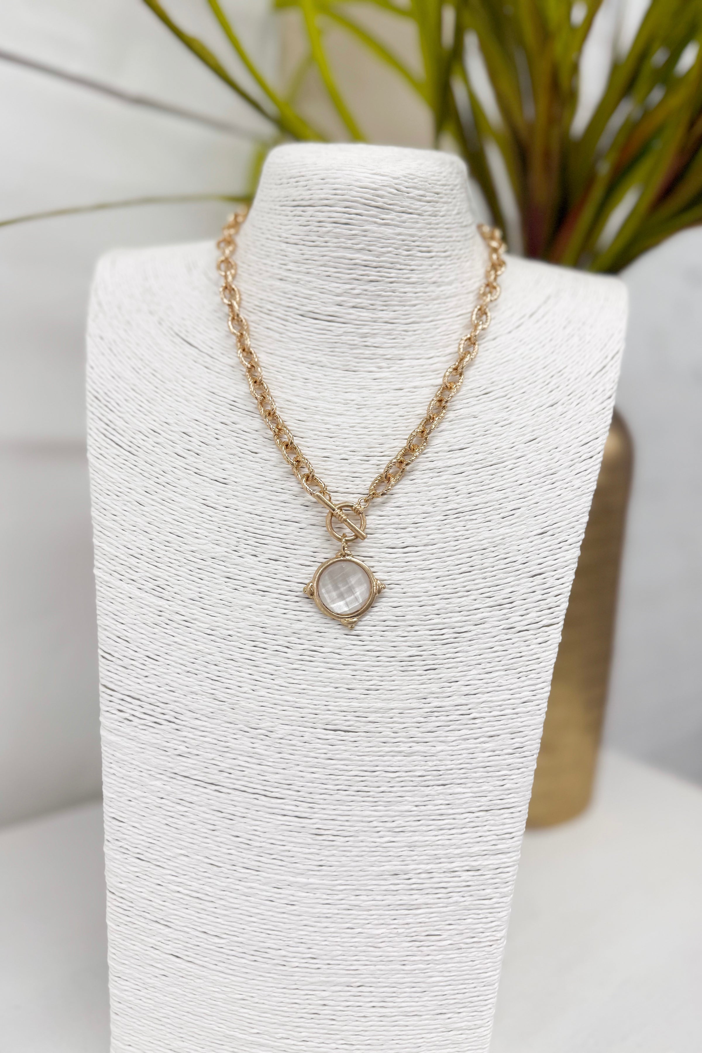 Cloud and Gold Round Stone Necklace