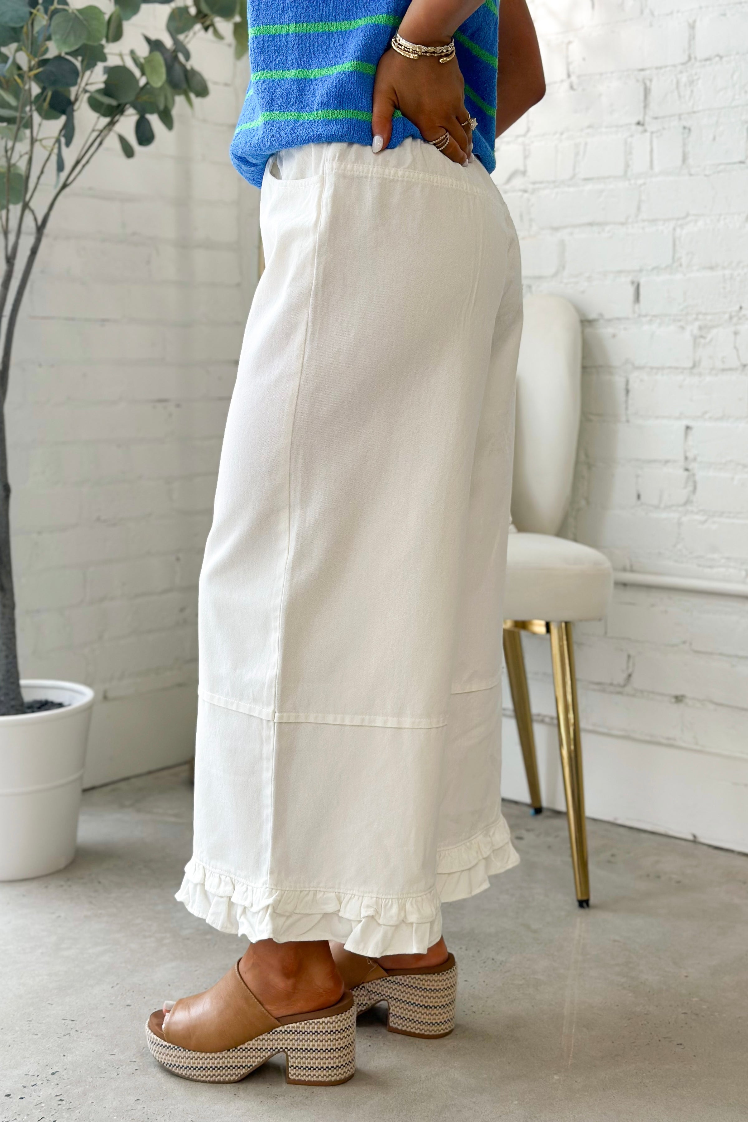 Off White Ruffle Hem Pants