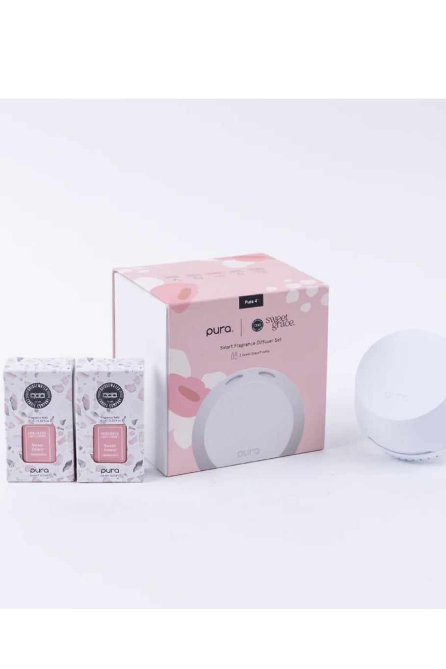 Meet the Pura + Bridgewater Sweet Grace Lover's Kit—the ultimate scent solution for your home. With a sleek design and 500 sq. ft. of coverage, this smart diffuser fills your space with the iconic Sweet Grace fragrance. Easily control schedules, swap between two scents, and enjoy adaptive, climate-controlled diffusion through the Pura app. Kit includes 1 Pura Smart Home Diffuser and 2 Sweet Grace Pura Smart Vials—your perfect match for effortless, luxurious scenting.