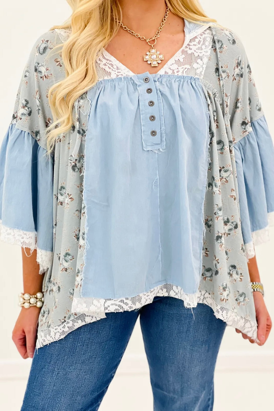 Denim Multi Woven Top